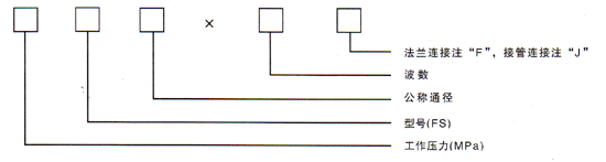 表示:工作壓力為0.6MPa,通徑DN=100mm,波數(shù)為20,法蘭連接的復(fù)式波紋補(bǔ)償器。