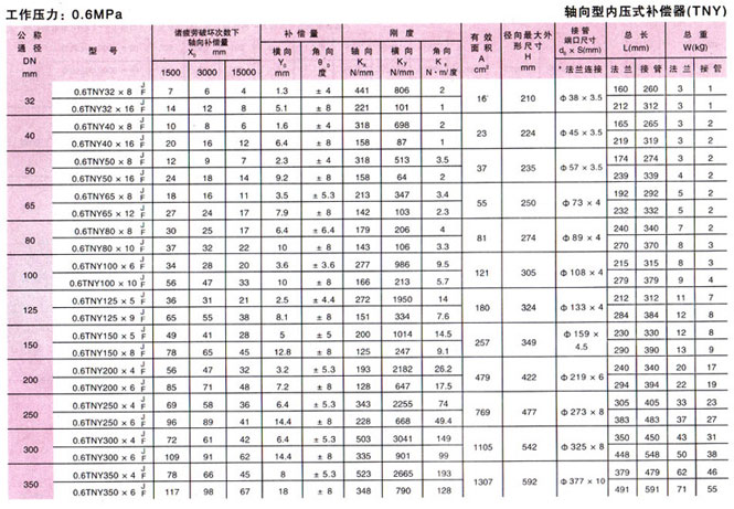 軸向型內(nèi)壓式波紋補償器(TNY)參數(shù)5