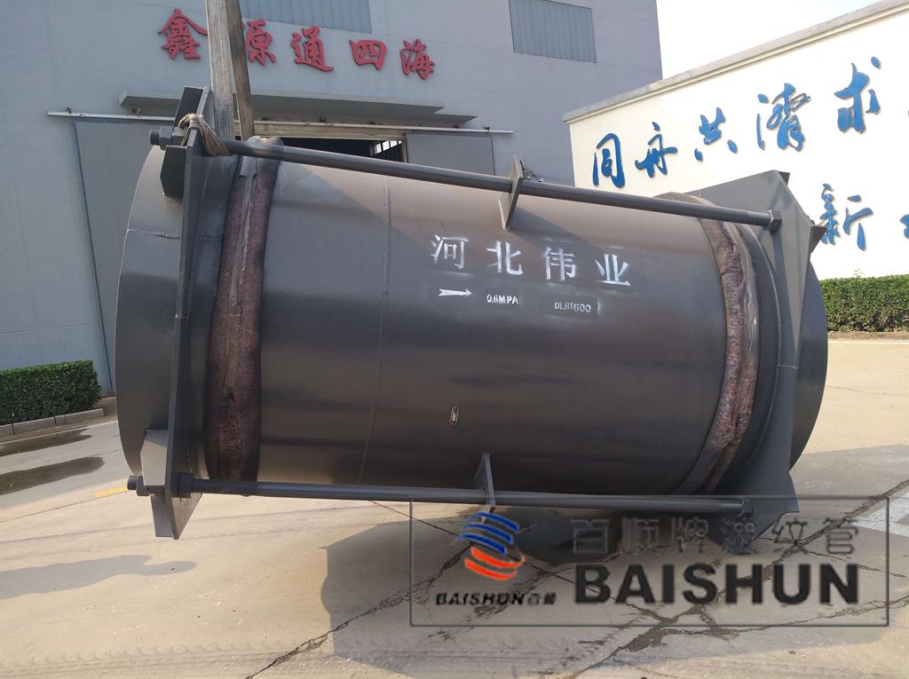 大拉桿橫向波紋管補償器,是一種用來補償彎曲管道的橫向位移。大拉桿波紋管補償器是由兩個相同的波紋管及端管、端板和拉桿組成的撓性部件,通過波紋管補償器的角偏轉可吸收管道單平面或多平面的橫向位移。4根長拉桿能承受內壓推力和其它附加外力的作用,拉桿兩端的螺栓出廠前已調好間距,安裝前大拉桿是松動的,在大欄桿波紋管補償器工作變形后,大拉桿可以起到限制變形量保護波紋管補償器的作用。