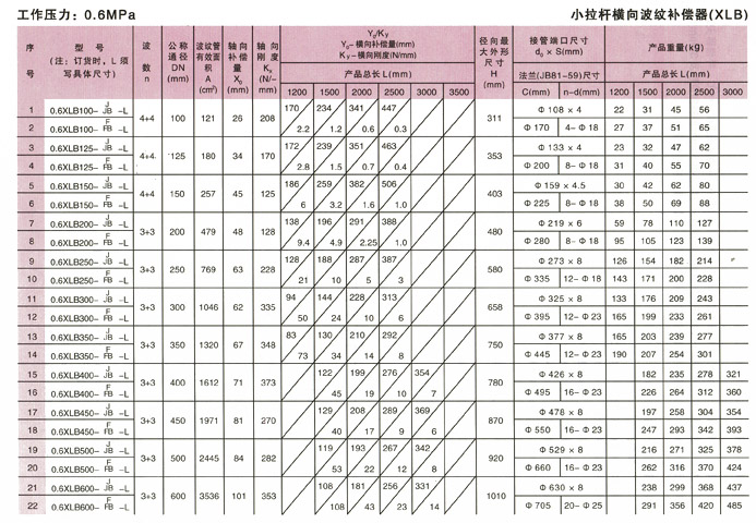 小拉桿橫向波紋補(bǔ)償器(XLB型)產(chǎn)品參數(shù)1