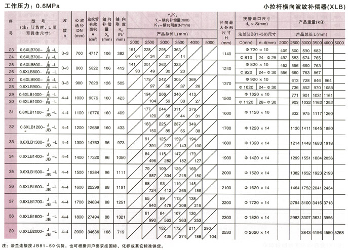 小拉桿橫向波紋補償器(XLB型)產品參數2