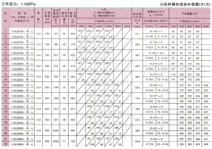 小拉桿橫向波紋補(bǔ)償器(XLB型)產(chǎn)品參數(shù)3