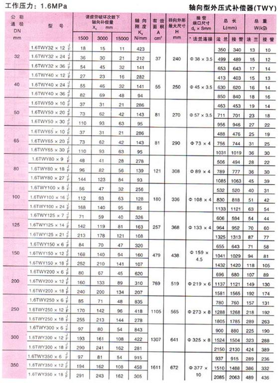 軸向型外壓式波紋補(bǔ)償器(TWY)參數(shù)5
