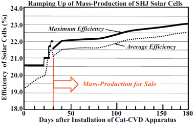 圖10一家太陽(yáng)能公司采用Cat-CVD設(shè)備用于大規(guī)模制備SHJ太陽(yáng)電池的效率數(shù)據(jù)